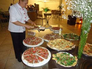 Serão servidos até 21 sabores de pizzas (16 salgadas e 5 doces), não sendo obrigatório o preparo de todos estes sabores.Será feito as pizzas enquanto  houver consumo .
