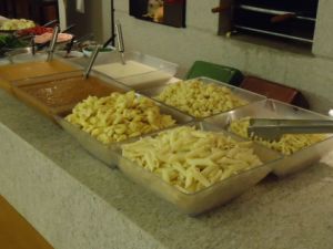 Serão servidos até 4 tipos de massas (Penne, Talharim, Capelete e Spaghetti) e 3 tipos de molho.